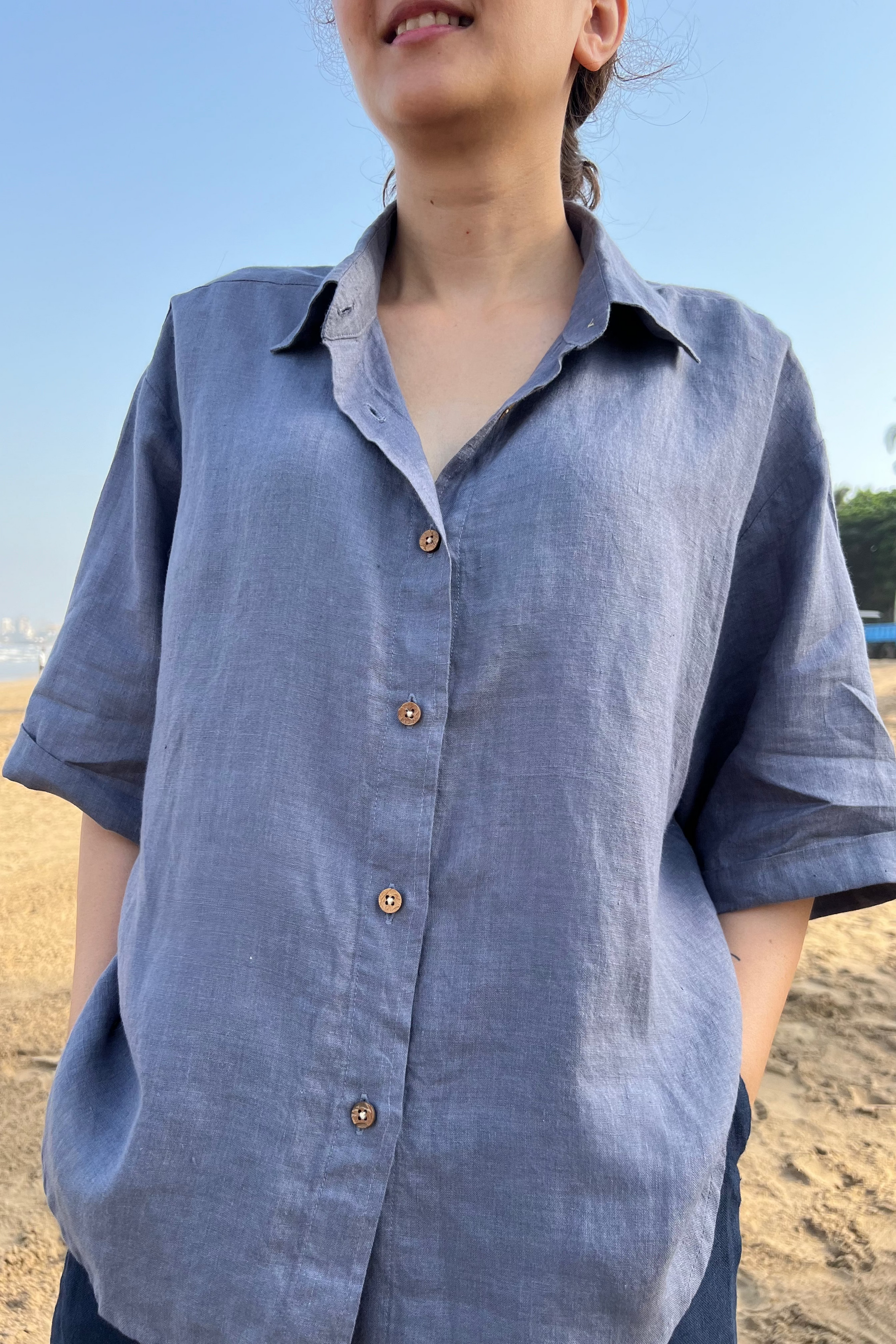Designed in airy 100% linen, this oversized shirt features falling shoulders and a relaxed silhouette. The graphite purple tone lends depth and elegance to effortless, everyday wear.