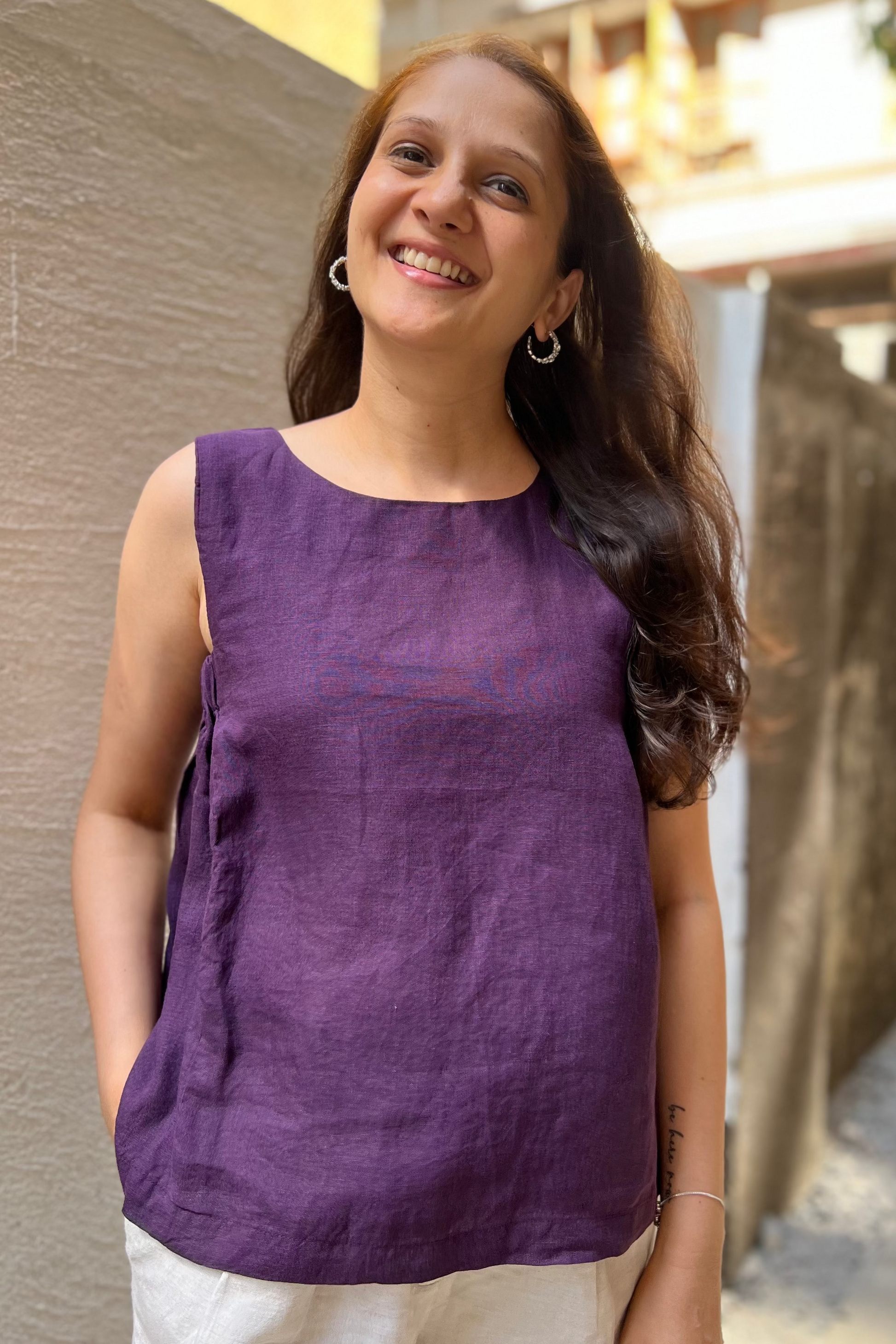 Vega blouse has a relaxed silhouette with elastic detailing on the sides. The deep wine colour makes it perfect for both day and evening wear. Effortless, airy, and designed for everyday wear, it’s a refined warm-weather essential with beautiful movement.